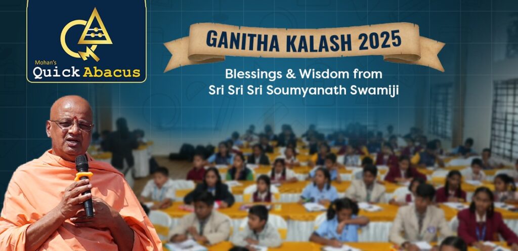 The Ganitha Kalash 2025 event at Quick Abacus Institute was elevated with the divine presence of Sri Sri Sri Soumyanath Swamiji from Sri Kshetra Adichunchanagiri. His message beautifully blended wisdom, values, and the true essence of holistic child development.