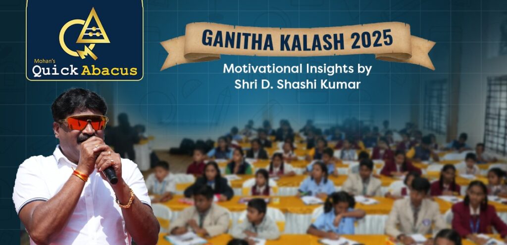 As part of the Ganitha Kalash 2025 Competition, Shri D. Shashi Kumar delivered an energetic and inspiring speech that resonated strongly with students, parents, and educators. His words highlighted the true spirit of the event – enthusiasm, confidence, and a love for learning mathematics.